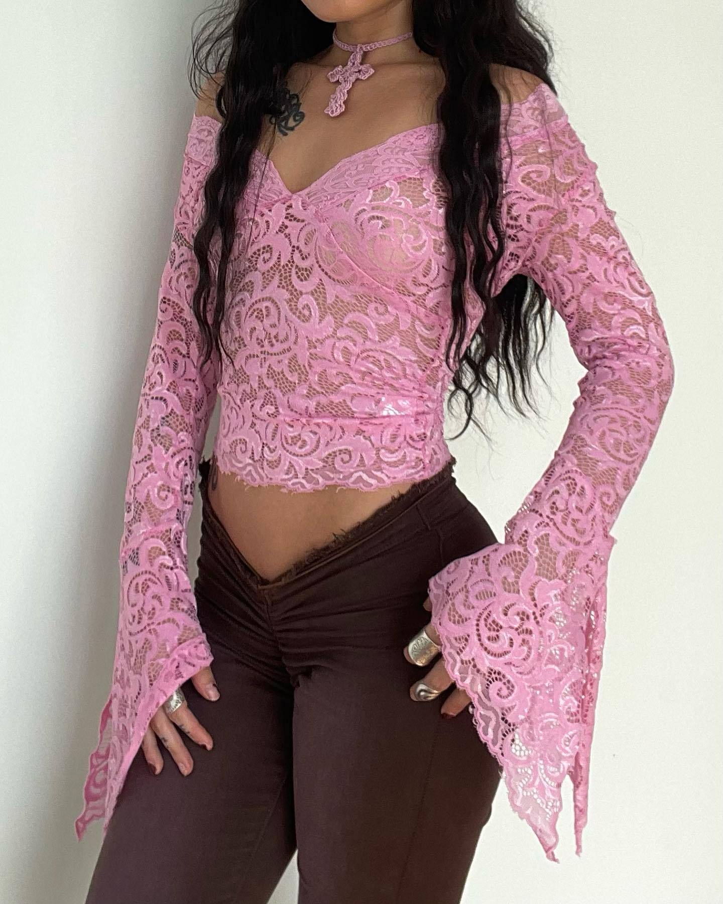 Fairy Vintage Lace Floral Crop Tops